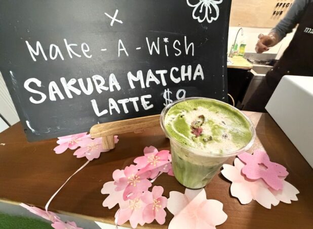 こちらのカフェでは抹茶やほうじ茶を使った週替わりのスペシャルドリンクを楽しめます。春の訪れを感じさせる「さくら抹茶ラテ」は、京都・宇治産のプレミアム抹茶を贅沢に使った一杯。ふわりと広がる桜の香りと抹茶の深い味わいが重なり合うドリンクです。