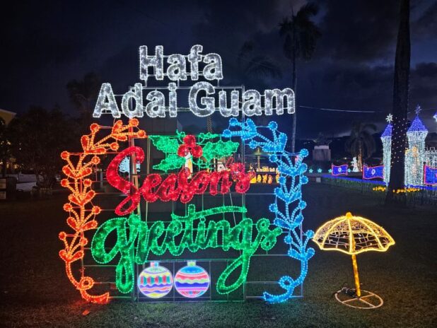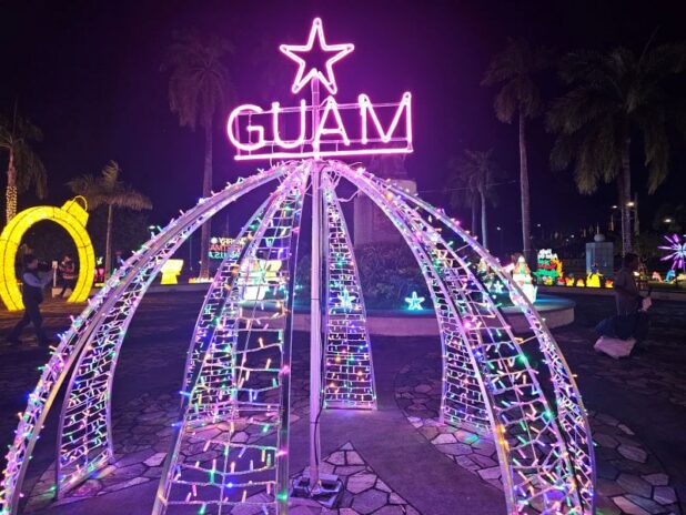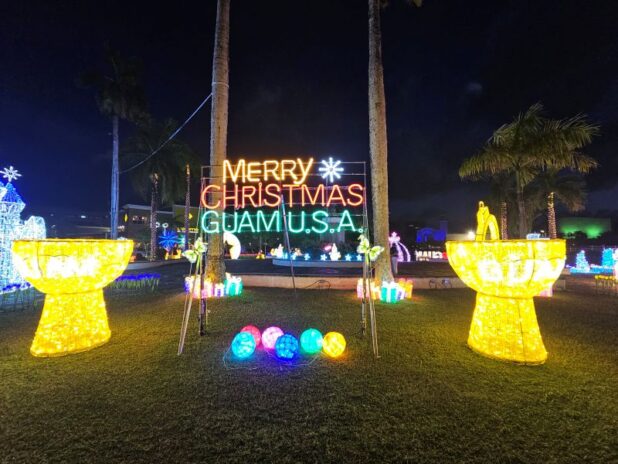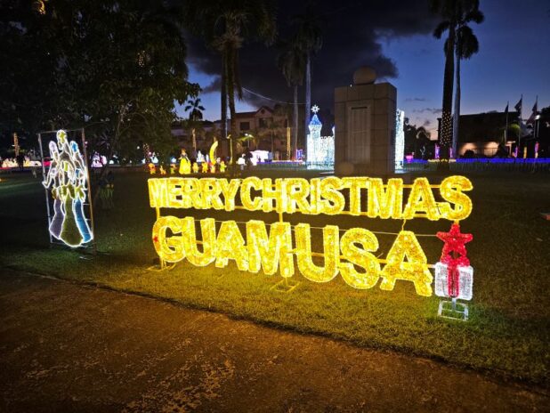 今年のクリスマスイルミネーションは昨年より少し遅れて12月17日に点灯され、ハガニア地区のスキナープラザで華やかに開催されています。初日にはパレードが行われ、さらにフードトラックや屋台が立ち並び地元グルメや雑貨を楽しむ人々で大賑わいとなりました。幻想的な光に包まれた広場には思わず写真を撮りたくなるスポットが至るところに設けられ、南国グアムならではの特別なクリスマス体験を演出しています。