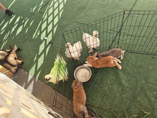 食べ物だけではありません、ゴーツ&ギグルス(Goats & Giggles)では可愛い動物たちとたわむれることができます。ヤギやウサギといったおなじみの動物に加え、ふわふわの羽が特徴的な珍しいシルキーチキンもいて思わず写真を撮りたくなるほどの可愛さ。子どもから大人まで、誰もが自然と笑顔になれる癒しのスポットです。