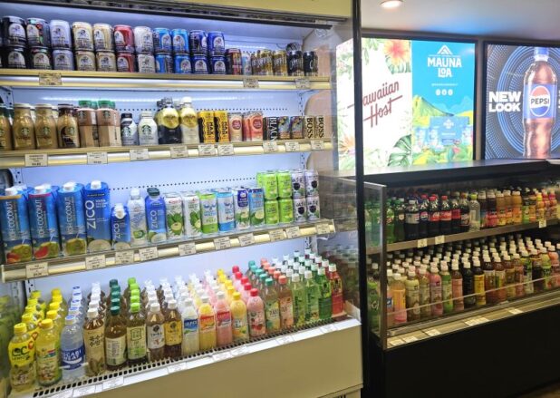 水やお茶はもちろん、熱中症対策にぴったりなココナッツウォーターも豊富に揃っています。アルコール類も購入できますが、法律により午前2時〜午前8時の間は購入できませんのでご注意ください。(飲酒は21歳以上の方のみ可能でパスポートなど写真付きの身分証明書が必要です)。