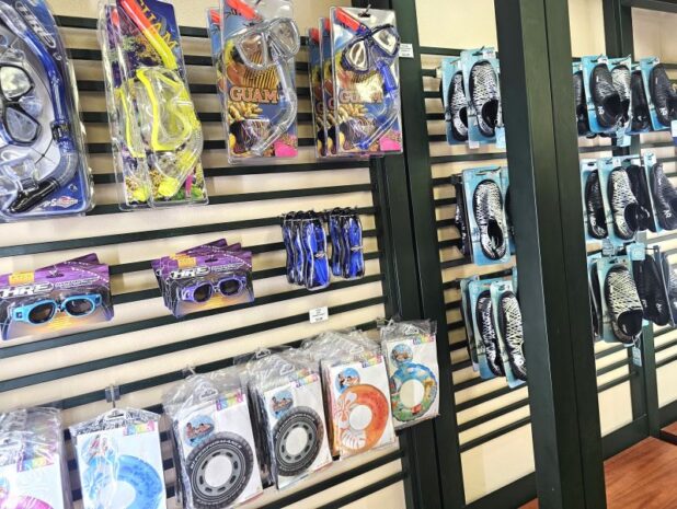 シュノーケルセットやビーチシューズ、浮き輪などマリンスポーツに欠かせないアイテムも揃っています。購入した浮き輪はその場で空気を入れてもらえるのですぐ使えます!
