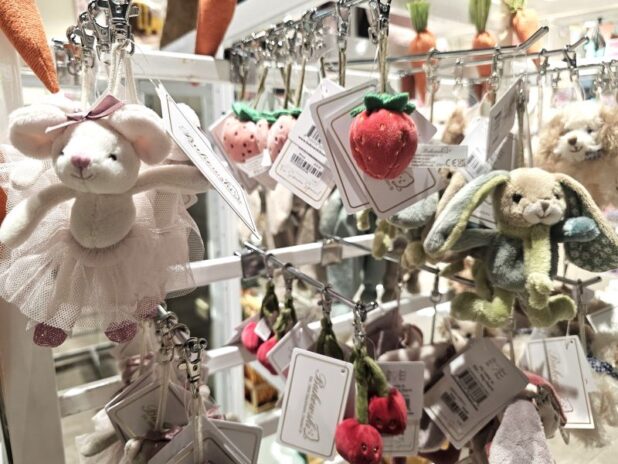 バッグチャームが流行している今、ぬいぐるみチャームのかわいさも見逃せません。ウサギや犬、イチゴ、サクランボなど、選ぶのが楽しくなるラインナップです。