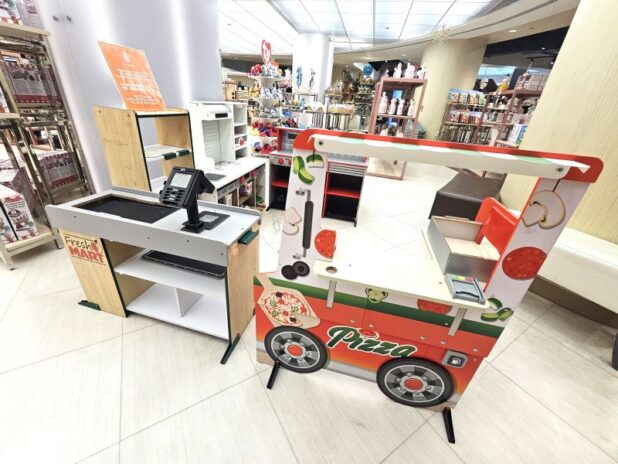 売り場内にはお試しごっこ遊びスペースもあるので、遊びながらお気に入りを見つけられます。